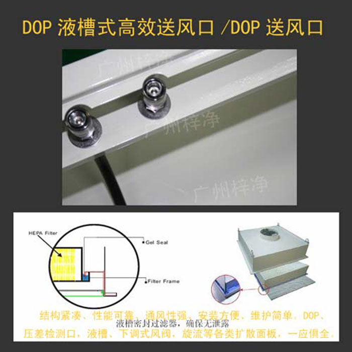 高效過濾器(送風(fēng)口)簡稱DOP高效送風(fēng)口或者液槽式高效送風(fēng)口,解決了因送風(fēng)口中成框與
